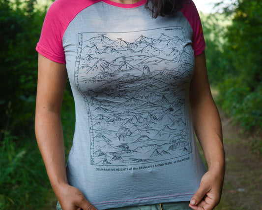 Дамска тениска от мериносова вълна с илюстрация "Върховете на света"