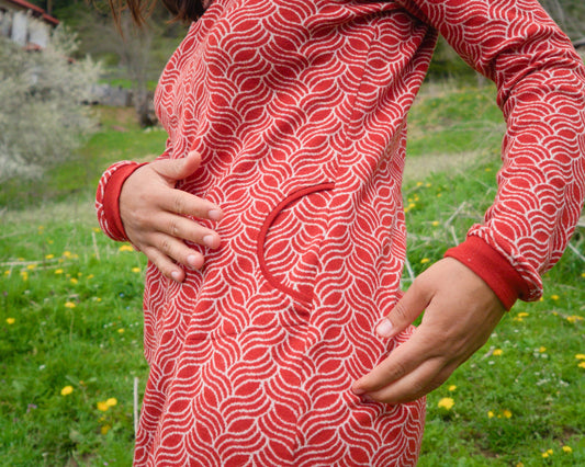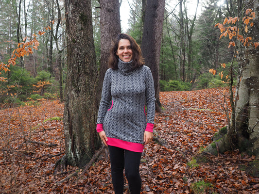 I own 2 of these hoodies in forest green and bright red. The forest green has a cute brown with Nordic animals print. I also ordered one for my friend and she wore it on her trip to Norway. The hoodies are beautifully made, perfect fit and fairly easy to hand wash and dry naturally. I'm thinking of ordering a 4th hoodie for myself and a 5th one for my hubbie. They're my favourite winter wear. I love how my custom fit hoodie fits underneath any coat I choose to wear. The merino is beautifully soft and a close knit. Perfect for UK winter weather.